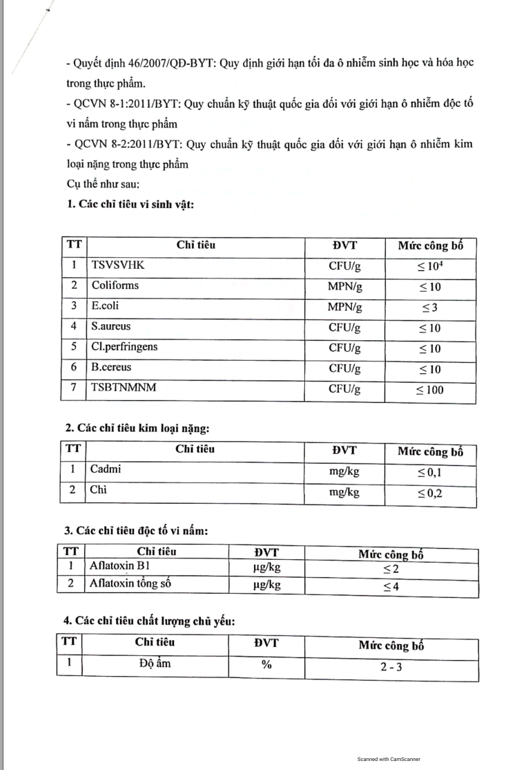 BẢNG CÔNG BỐ CHẤT LƯỢNG SẢN PHẨN CU ĐƠ HOÀNG NGUYÊN